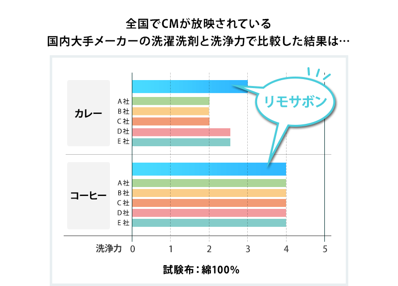 • 大手メーカー洗剤と同等以上のリモサボンの洗浄力